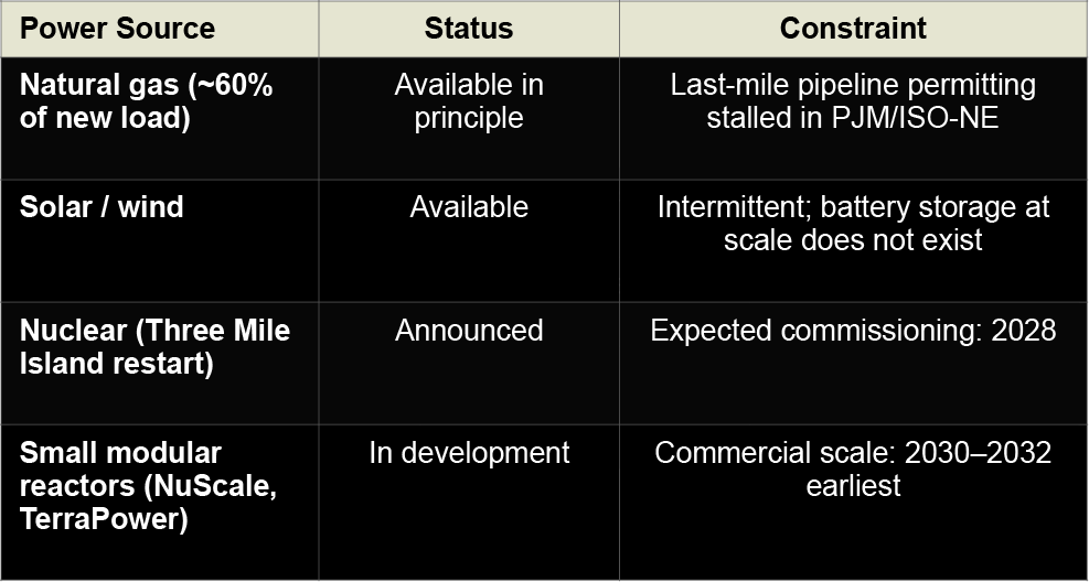 Nuclear is the forward solution. The timeline disqualifies it as a near-term answer. There is a three-to-five year window where AI CAPEX deployment will substantially outpace nuclear availability.